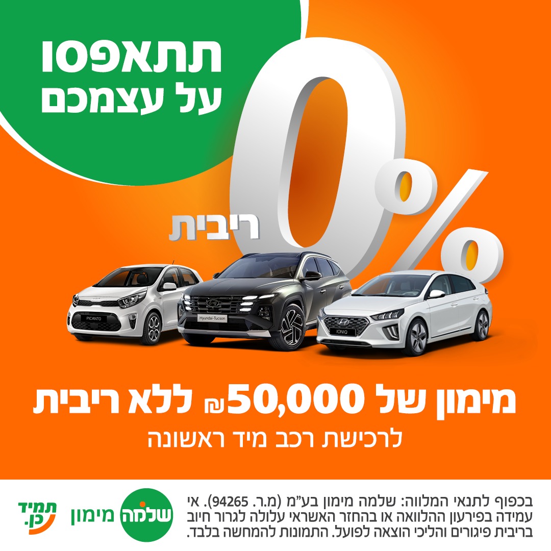 בכפוף לתנאי המלווה: שלמה מימון בע"מ (מ.ר. 94265). אי עמידה בפירעון ההלוואה או בהחזר האשראי עלולה לגרור חיוב בריבית פיגורים והליכי הוצאה לפועל. התמונות להמחשה בלבד. אין כפל הטבות והנחות